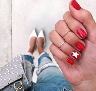 تفضل الكثير من النساء طلاء الأظافر باللون الأحمر، الذى يناسب البشرة الفاتحة، كما يعتبر من الألوان الأنيقة، ويمكن أيضاً إضافة ملصق على شكل نجمة كبيرة على ظفر أحد أطراف الأصابع .
